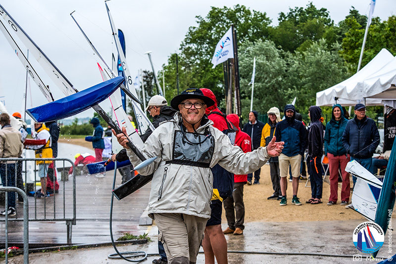 La dernière course est lancée. Chacun espère jusqu’au bout maintenir ou améliorer sa place. Quand la flotte A part, on est presque à retenir notre souffle. Chris et Christophe prennent deux options différentes, et Chris vire en tête et la garde… jusqu’au dernier virement ou Christophe ne laisse aucune chance et franchit la ligne en 2ièm devant Chris en 4ièm, consolidant ainsi son avance au général. Christophe est champion du Monde. Pour autant Chris est vraiment admirable sur l’ensemble du championnat. Perso, je suis admiratif du parcours de tous les concurrents, avec leurs différentes motivations à être là. Alors oui, un énorme bravo au podium Christophe Boisnault, Chris Harris, et Darin Ballington qui ont dominé. Mais un grand grand bravo et merci à tous d’être venus jouer sur ce plan d’eau des Vallée de Saint-Hilaire-de-Riez. Il est l’heure pour moi de rentrer à la maison et de retrouver le chemin du travail, mais je te promets que dans le Monde de Kiki c’est loin d’être fini. Momiflette va reprendre fichier par fichier, jour par jour pour réussir enfin à faire un vrai reportage sur ces championnats du Monde, plus complets donc que ces simples résumés faits un peu dans l’urgence. Alors ne pars pas trop loi, et à tout bientôt pour la suite des aventures.