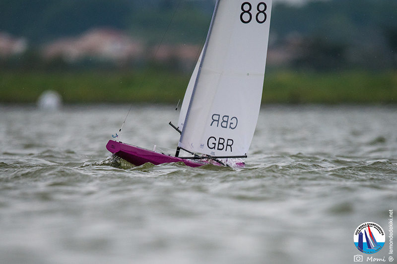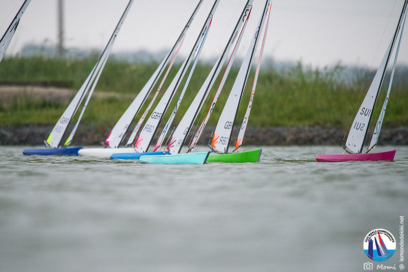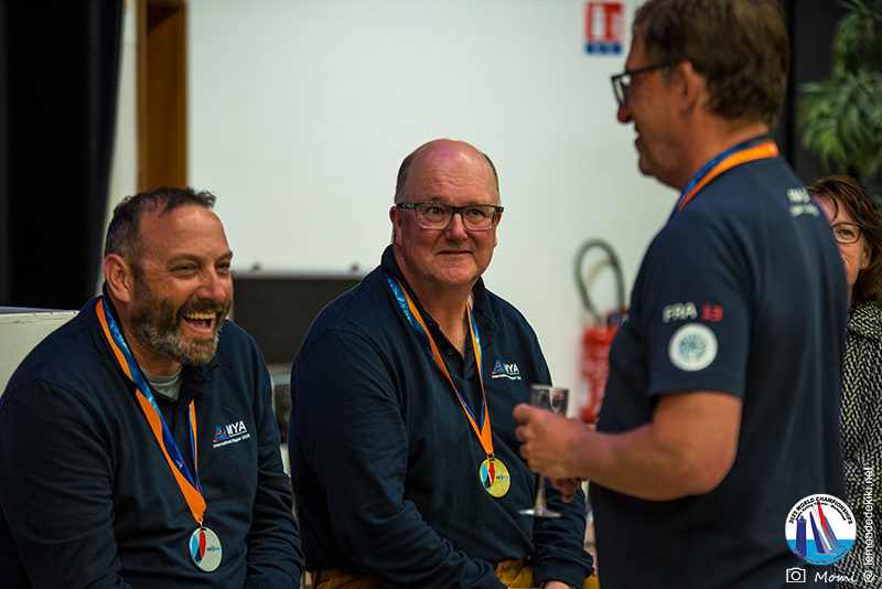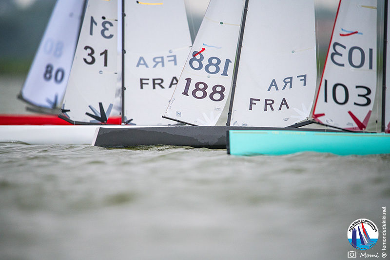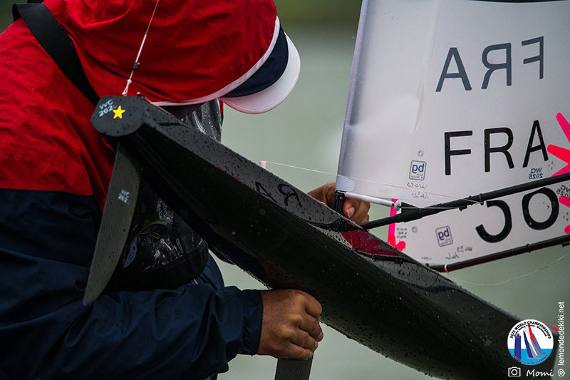 [The final race is underway. Everyone hopes to maintain or improve their position until the very end. When the fleet splits, we almost hold our breath. Chris and Christophe take two different options, and Chris takes the lead and keeps it… until the last tack where Christophe leaves no chance and crosses the line in 2nd ahead of Chris in 4th, thus consolidating his overall lead. Christophe is World Champion. However, Chris is truly admirable throughout the championship. Personally, I admire the performance of all the competitors, with their different motivations for being here. So yes, a huge congratulations to the podium finishers Christophe Boisnault, Chris Harris, and Darin Ballington who dominated. But a big, big congratulations and thank you to everyone for coming to play on this body of water in the Saint-Hilaire-de-Riez Valley. It’s time for me to go home and get back to work, but I promise you that in Kiki’s World, it’s far from over. Momiflette will take it file by file, day by day, to finally manage to produce a real report on these World Championships, more complete therefore than these simple summaries done somewhat in a hurry. So don’t go too far, and see you soon for the rest of the adventures.]