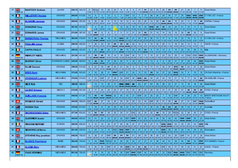Dernier jour… comme une envie de connaitre le vainqueur, comme une envie que ça continue, comme une envie de rentrer à la maison, comme une envie… bref, un joli bazar dans ma tête en ce dimanche matin, alors que Momi développe les photos pour la cérémonie de ce soir. La météo n’est pas au beau fixe. Le ciel est gris, et quand on arrive sur le plan d’eau, le vent brille lui, mais par son absence ! L’aperçu n’est levé qu’à 11h10, pour lancer la 17D. A la fin de la 17A, Chris est toujours devant avec 53pts suivi de Christophe avec 54 pts.