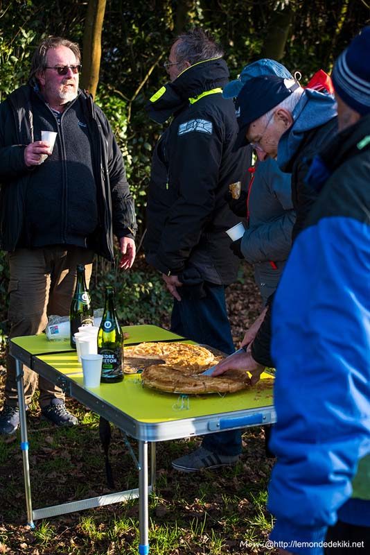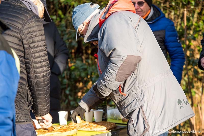 Entre deux départs, une première galette très appréciée circule de mains en bouches, et de sourires en sourires. Merci à Nono qui a préparé cette magnifique galette.
