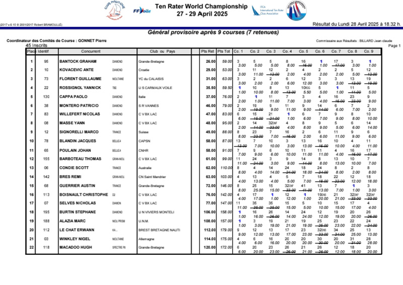 « Lundi 04/28, jour 2 des championnats du Monde de Classe 10R