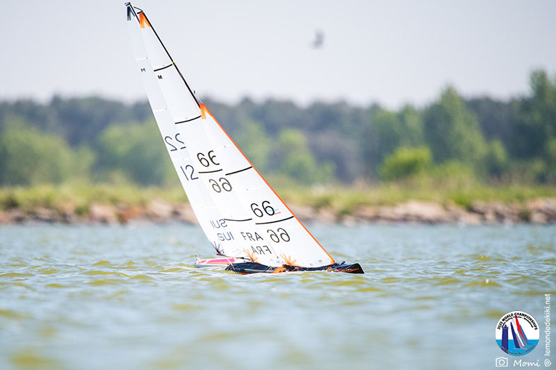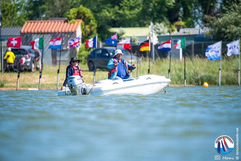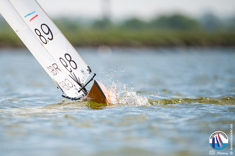 [Yesterday afternoon, we began the last half of the M class world championship. More than, or even, 2 days of competition before we find out the new world champion. Some are calm, others nervous, some are sometimes disappointed, but everyone keeps smiling as they find themselves on the water. This morning, we sail on the west bank, returning to the 13C. The wind strength fluctuates, and we find ourselves in the same fleets of the A and B game, at the risk of plunging downwind, or dragging ourselves close-hauled… This is actually the case all day, where everyone observes and questions each other before launching the boat. Last-minute changes follow one another. After lunch, the course is re-wet with a start in front of the club, with a wind that has shifted considerably. At 5:20 p.m., the whistle blows to announce the end of the day’s competition after the masterful 16A. The troops are very tired, there are many contacts, and the tension is a little too high. Wisely, we send ourselves home for our last evening in shared accommodation. A good night’s sleep is in order before tackling the last day… :D]