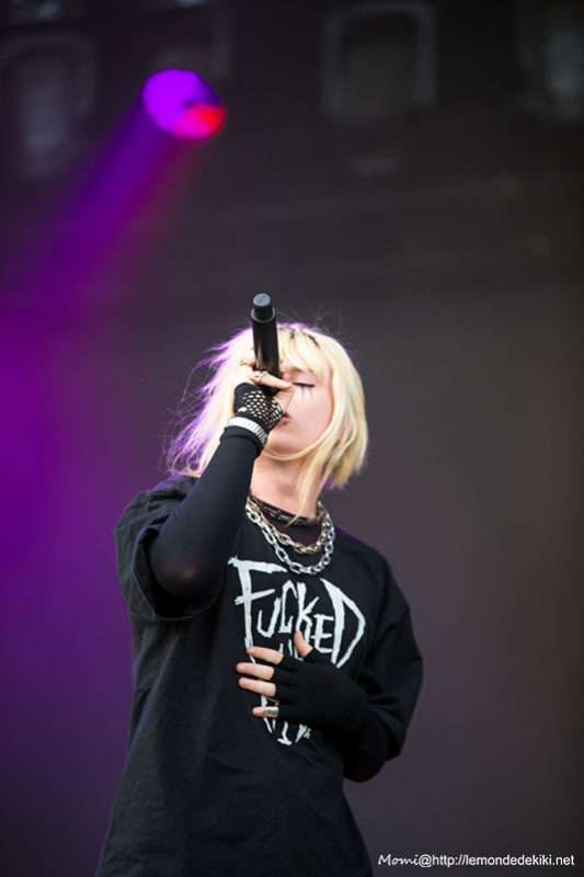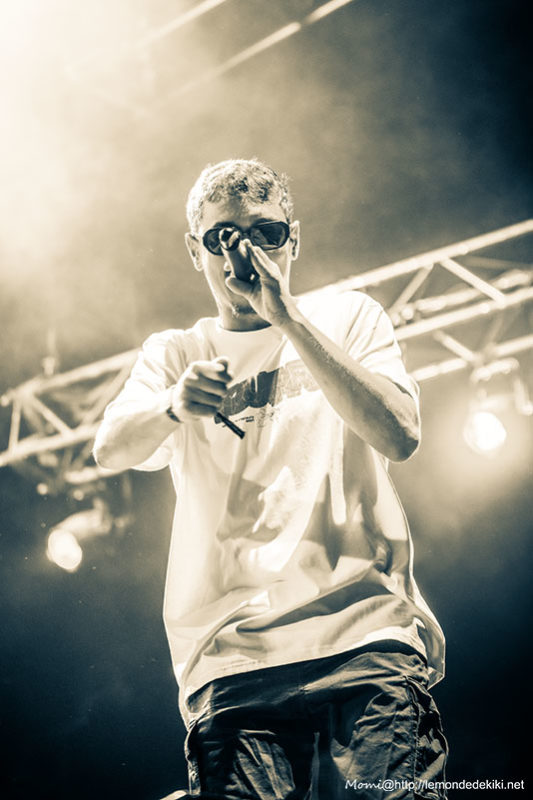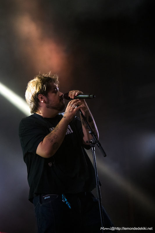 C’est drôle comment mes potes me connaissent… Alors que je sors du chapiteau, je pointe mon petit bout de nez en fosse de la scène Lancelot, et directement, certains me regardent avec un petit sourire en coin… hum huuuuumm, que se trame-t-il? Je regarde derrière moi, rien ! Sur les côtés, pas plus ! Ok, allez, crachez votre Valda, vous m’avez préparé quelle ânerie? Et ça fuse, « toi, tu vas pas aimer ! », « Allez, bon courage ! », « Tu vas tenir le coup? »… Amen, je souffle et comprends que je me dirige vers set de rap.