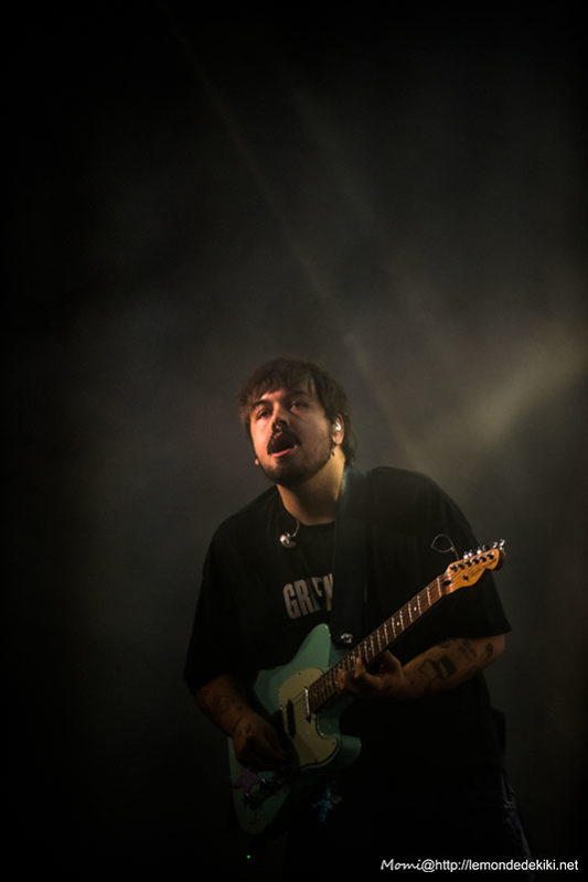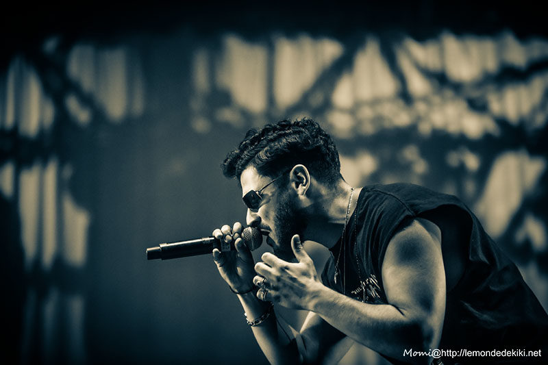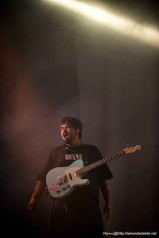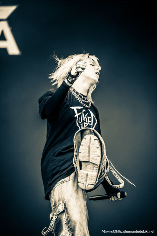 Le dos courbé mais les esgourdes et les yeux ouverts (on n’est jamais à l’abri d’une bonne surprise), je reste concentré. Alors que te dire? Bah, heu, pfff, soyons bref, concis… Ou pas, j’en sais trop rien. Ah si, j’ai 2 trucs à dire. Pour de vrai, le visuel n’est franchement pas mauvais, et ça change des satanés survêtements. Et la deuxième chose, elle n’est pas de moi, mais elle est tellement vrai. Quand je suis rentré en salle de presse après les 3 premières chansons, un pote que je vénère pour sa vivacité d’esprit et sa répartie, alors que l’on avait le direct de la scène sur écran et en son, nous lâche : « Nique ta mèèèèèèère, nique ta mèèèèèèèère, ok, mais quand est ce qu’on nique ton pèèèèèèère? ». Une question que l’on peut se poser effectivement. 😀