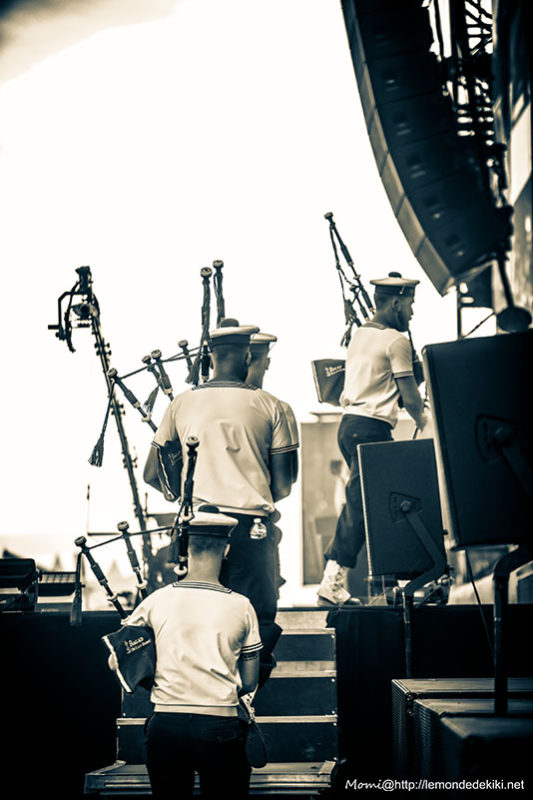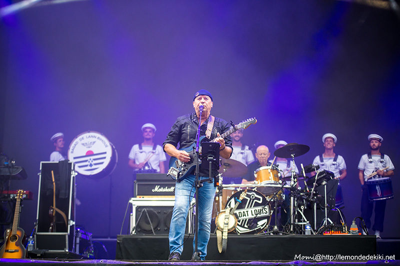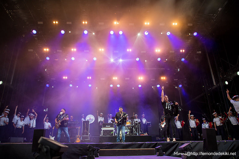 Je remonte quelques années en arrière… quelques petites années… Certains des festivaliers d’aujourd’hui étaient à peine nés… On est en 2009, au festival de la Dent Creuse à Guéhenno. A l’affiche ce soir là, il y avait les 3 fromages, les Fatals Picards, Les Shakaponk, et… les Soldats Louis. Alors je suis vraiment curieux de les revoir. D’autant que cette année, il y a une surprise en bonus. Le Bagad de Lann Bihoué a fait le déplacement pour les accompagner sur cette scène énorme qu’est la scène Excalibur. Et la magie fonctionne. Le Bagad déambule sur le site en partant de la régie pour accéder à la scène. C’est juste impressionnant et le ton est donné. Le public est en feu, certains juste festifs, d’autres plus nostalgiques, selon les générations. Quoiqu’il en soit, c’est vraiment un grand moment populaire au sens noble du terme.