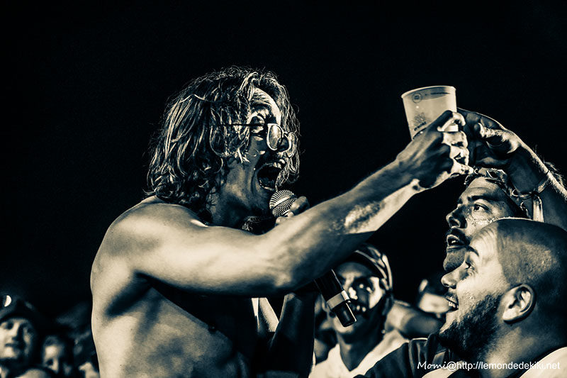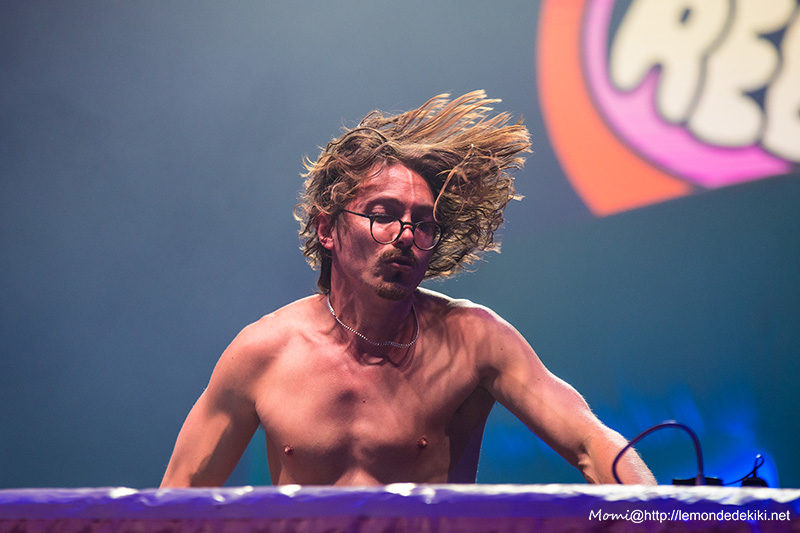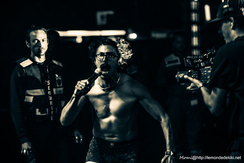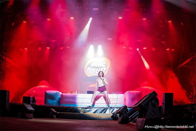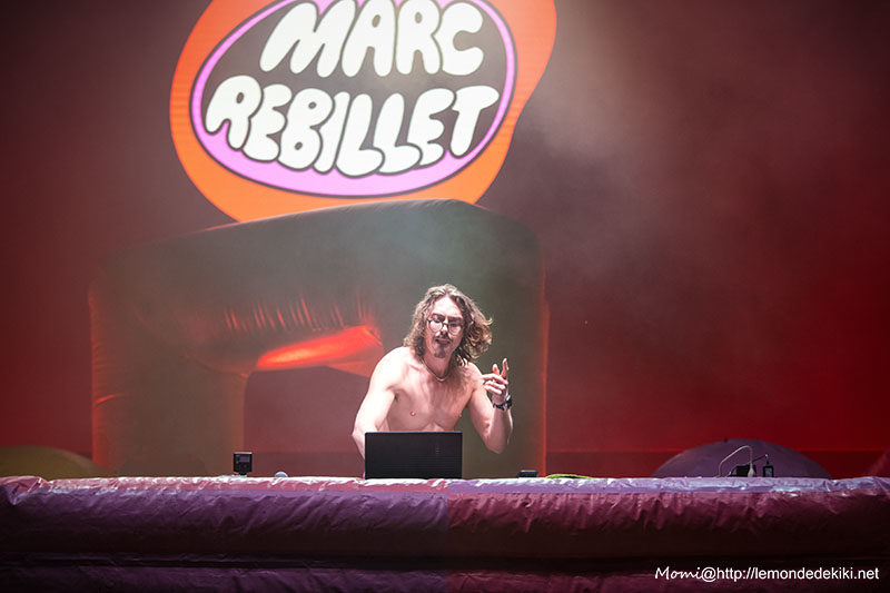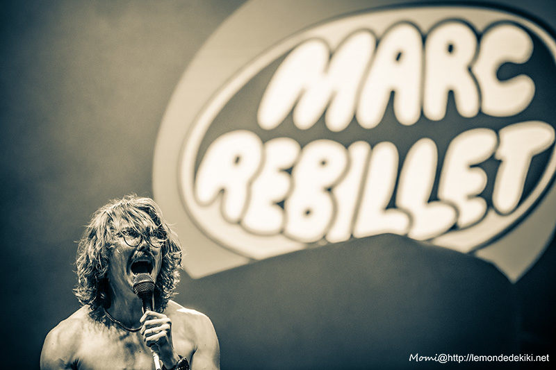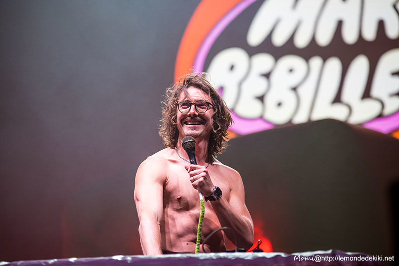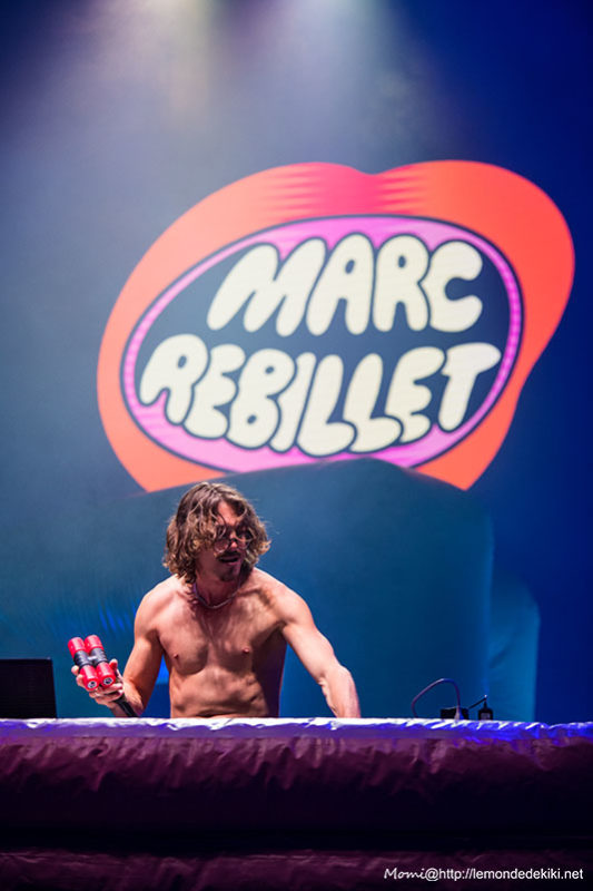 La soirée commence à toucher à sa fin. Mais autant te dire, que de mon côté, en matière d’homophonie respecté, j’ai une petite faim, celle de découvrir Marc Rebillet sur scène. Je connais de nom, je connais par médias interposés, mais je n’ai jamais vu ni entendu de mes propres récepteurs sensoriels que sont mes yeux et mes oreilles. Je suis très impatient, et je ne suis surtout pas déçu. Déjanté, provoquant, déluré, mais cuisiné et mis en scène avec un talent incroyable de cet artiste pluridisciplinaire. De la musique à la vidéo en passant par le théâtre, le franco-américain s’exprime, prend position, et assume. Mais quel talent !