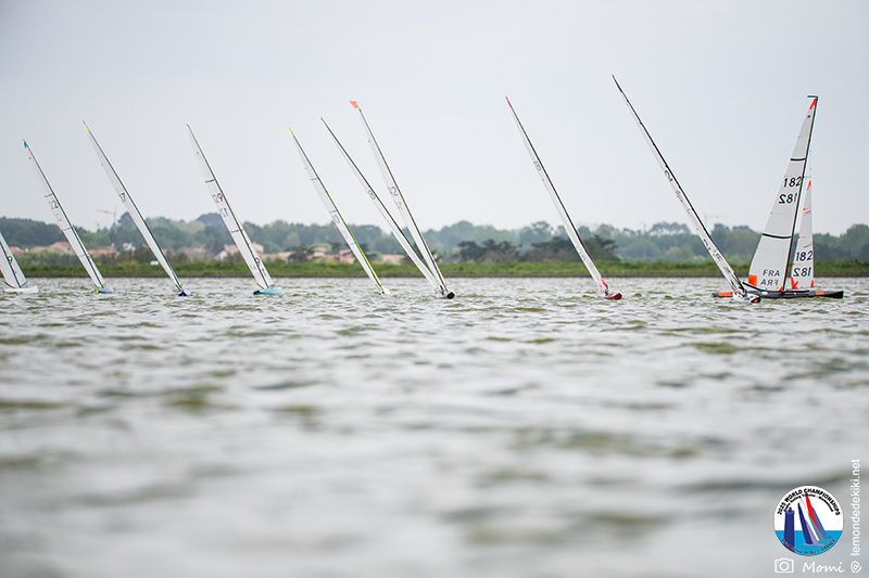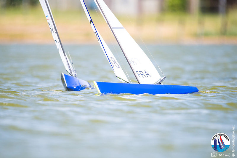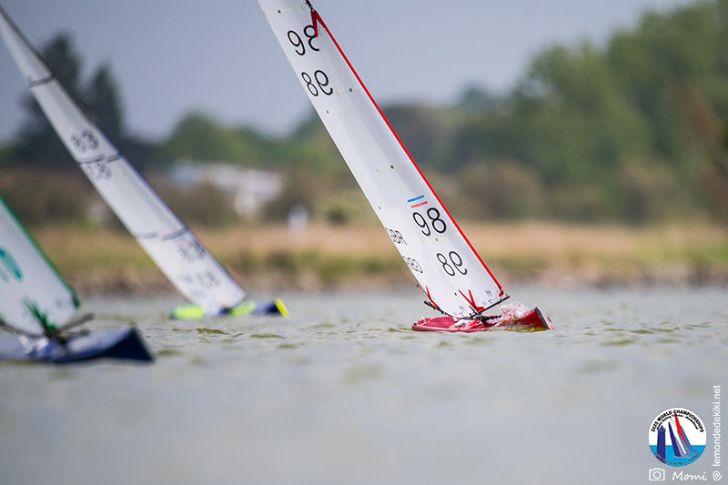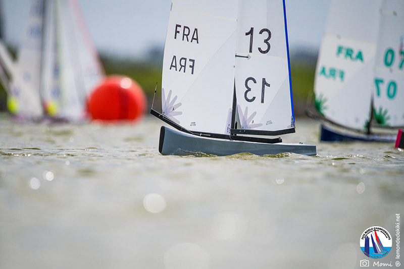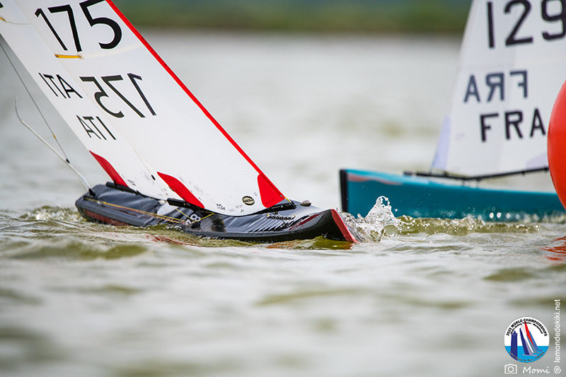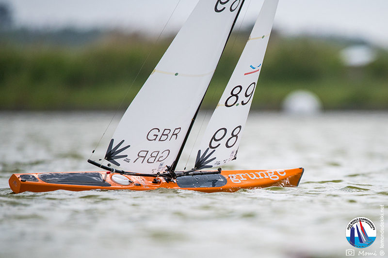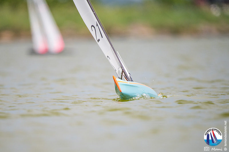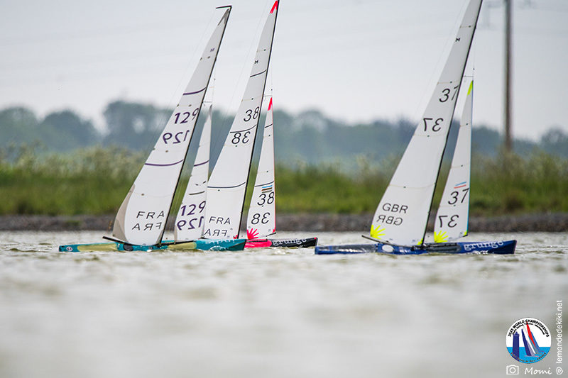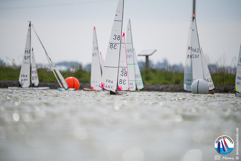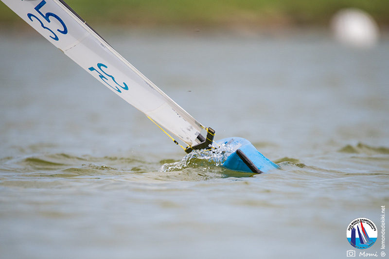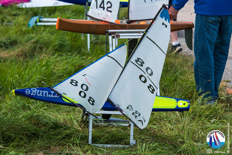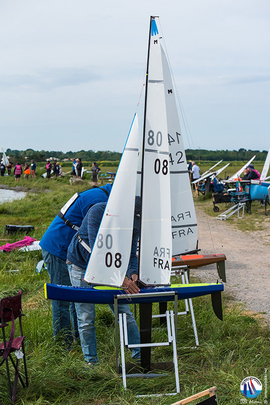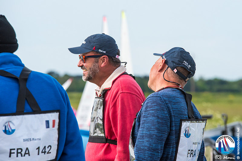 C’est à ce moment là que tout bascule, sans que personne n’en prenne vraiment conscience, un concurrent français, Yann Massé (FRA08) nous fait faire un saut spatio-temporel, et nous ramène un mois plus tôt, au 1ier avril, dans un fumet de poisson frais et savoureux. Alors qu’il s’affaire au montage de son Grunge, les copains l’observent les yeux remplis d’admiration… à moins que ce ne soient des yeux rieurs. Yann, prêt à mettre à l’eau, se retourne pour chercher sa radio, et se trouve face aux copains qui ne retiennent plus leur fou-rire en le remerciant d’avoir monté le bateau de Nicolas Willefert (FRA83)… Et oui, Yann a monté ses gréements sur la coque de Nico… je ne sais pas qui remercier pour ce moment de pur bonheur : dois-je mettre à l’honneur la complicité de deux coques jumelles? Ou mettre en avant la force des copains de ne rien lui dévoiler dans tous les sens du terme, avant qu’il n’ait fini le montage par inadvertance? Ou encore Yann pour cette bonne dose d’autodérision dont on va parler longtemps sur les berges des régates du 4 coins du Monde… bref, merci Yann pour ce formidable moment d’anthologie ! Peut-être devrais tu mettre tes lunettes avant, et non pas après avoir monté le bateau la prochaine fois? 😀 [It was at this moment that everything changed, without anyone really realizing it, a French competitor, Yann Massé (FRA08) took us on a space-time leap, and took us back a month earlier, to April 1st, in a scent of fresh and tasty fish. While he was busy assembling his Grunge, his friends watched him with eyes full of admiration… unless they were laughing eyes. Yann, ready to launch, turned around to look for his radio, and found himself facing his friends who could no longer hold back their laughter as they thanked him for assembling Nicolas Willefert’s (FRA83) boat… And yes, Yann mounted his rigging on Nico’s hull… I don’t know who to thank for this moment of pure happiness: should I give pride of place to the complicity of two twin hulls? Or highlight the strength of his friends for not revealing anything to him in every sense of the word, before he has inadvertently finished the assembly? Or Yann for this good dose of self-mockery that we will talk about for a long time on the banks of the regattas in the 4 corners of the World… in short, thank you Yann for this wonderful moment of anthology! Maybe you should put your glasses on before, and not after assembling the boat next time? 😀 ]