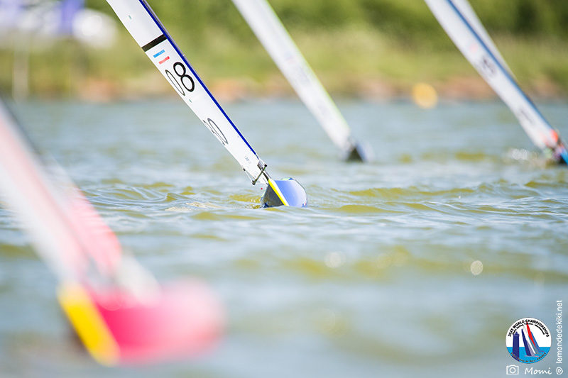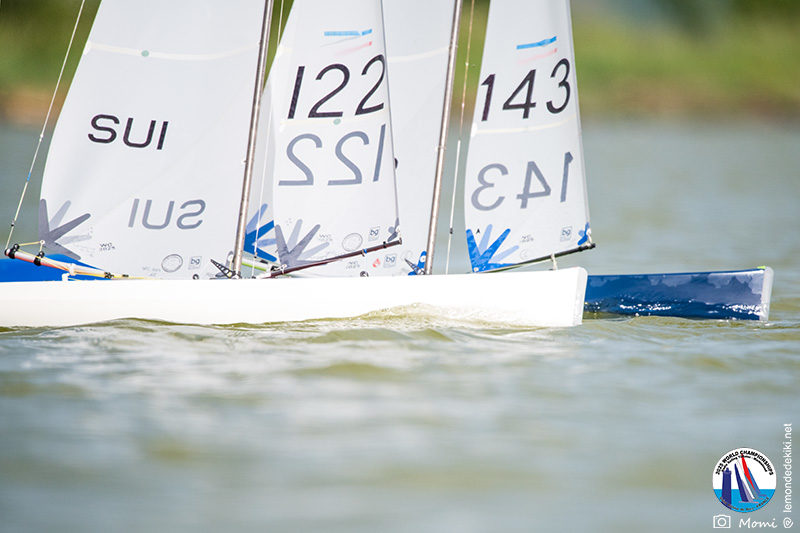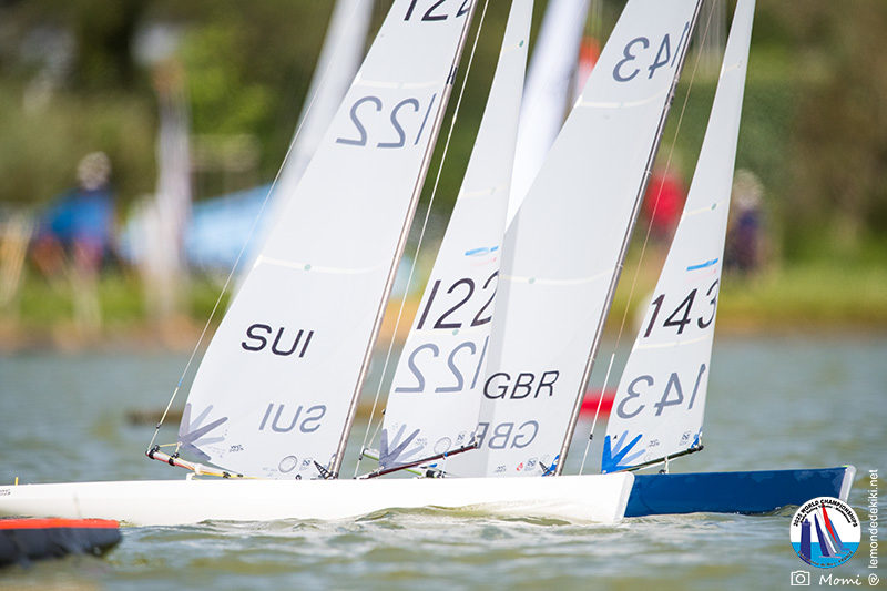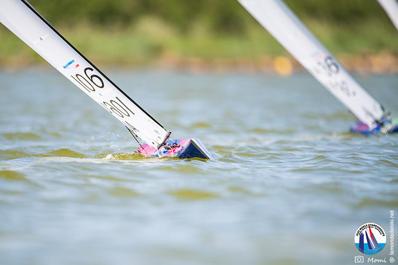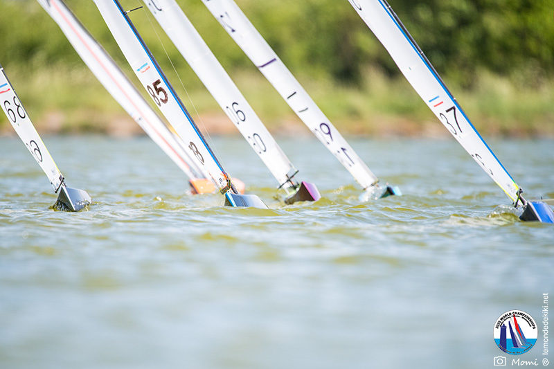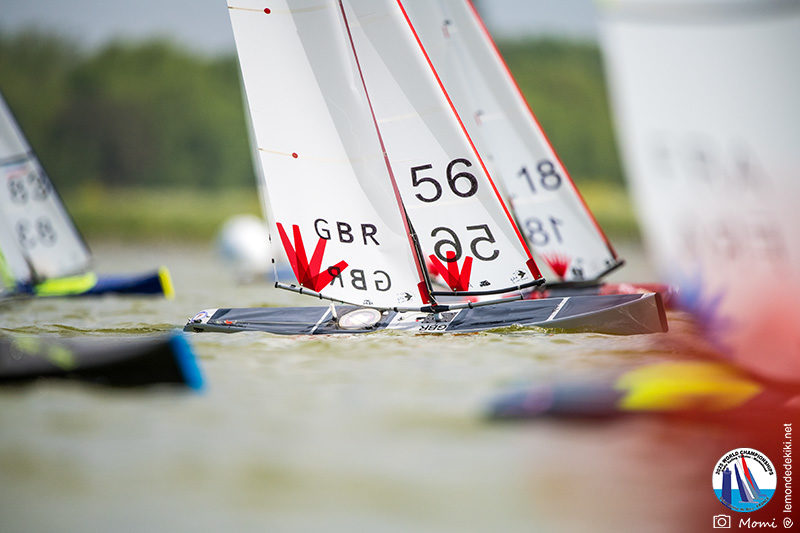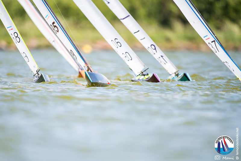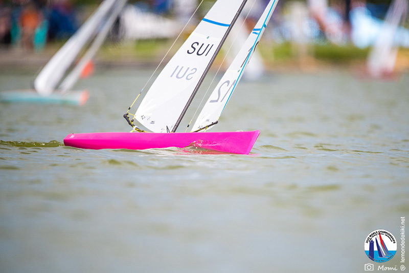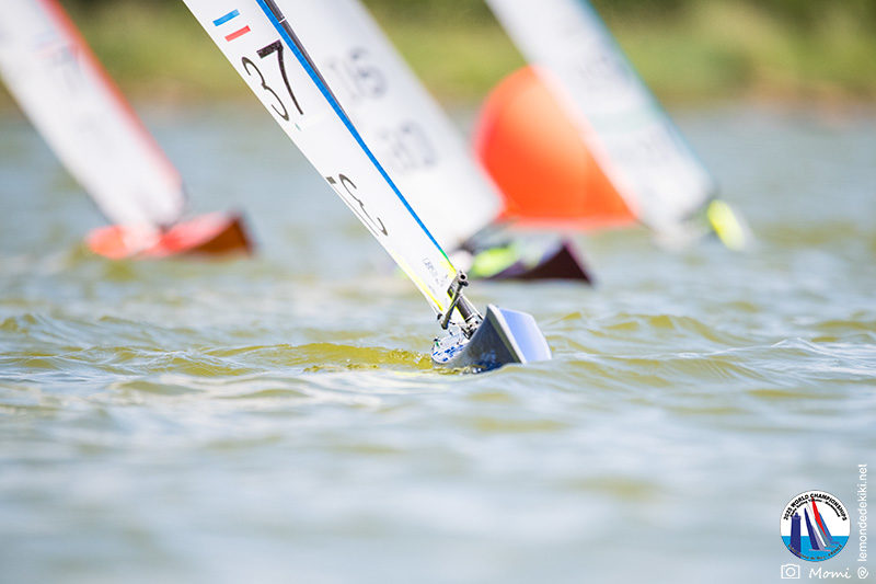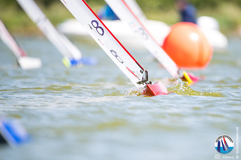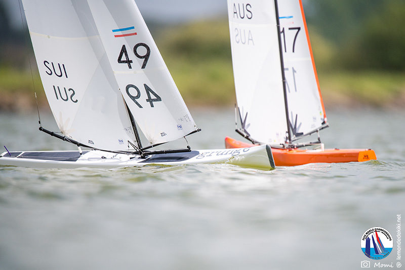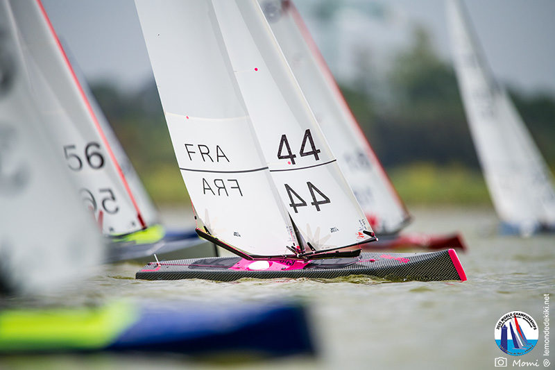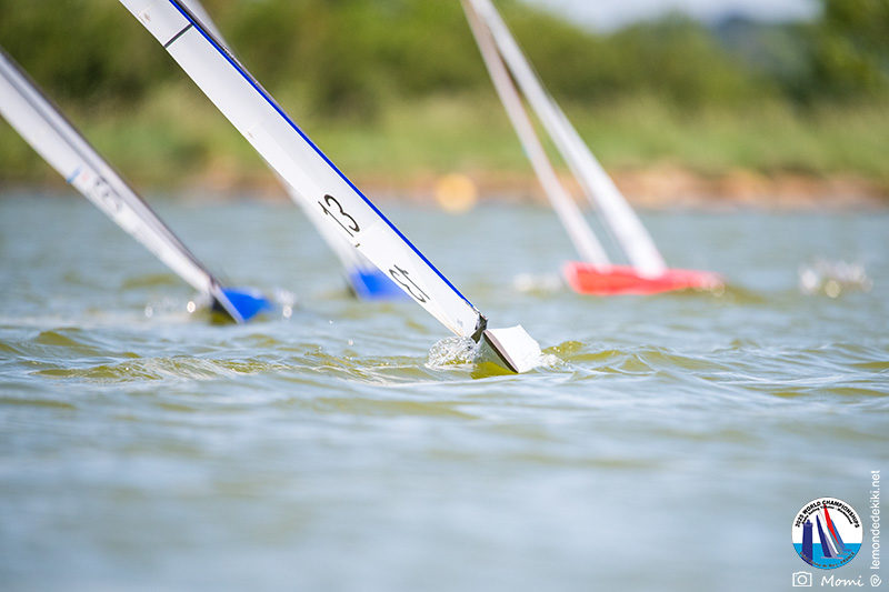 C’est à ce moment là que tout bascule, sans que personne n’en prenne vraiment conscience, un concurrent français, Yann Massé (FRA08) nous fait faire un saut spatio-temporel, et nous ramène un mois plus tôt, au 1ier avril, dans un fumet de poisson frais et savoureux. Alors qu’il s’affaire au montage de son Grunge, les copains l’observent les yeux remplis d’admiration… à moins que ce ne soient des yeux rieurs. Yann, prêt à mettre à l’eau, se retourne pour chercher sa radio, et se trouve face aux copains qui ne retiennent plus leur fou-rire en le remerciant d’avoir monté le bateau de Nicolas Willefert (FRA83)… Et oui, Yann a monté ses gréements sur la coque de Nico… je ne sais pas qui remercier pour ce moment de pur bonheur : dois-je mettre à l’honneur la complicité de deux coques jumelles? Ou mettre en avant la force des copains de ne rien lui dévoiler dans tous les sens du terme, avant qu’il n’ait fini le montage par inadvertance? Ou encore Yann pour cette bonne dose d’autodérision dont on va parler longtemps sur les berges des régates du 4 coins du Monde… bref, merci Yann pour ce formidable moment d’anthologie ! Peut-être devrais tu mettre tes lunettes avant, et non pas après avoir monté le bateau la prochaine fois? 😀 [It was at this moment that everything changed, without anyone really realizing it, a French competitor, Yann Massé (FRA08) took us on a space-time leap, and took us back a month earlier, to April 1st, in a scent of fresh and tasty fish. While he was busy assembling his Grunge, his friends watched him with eyes full of admiration… unless they were laughing eyes. Yann, ready to launch, turned around to look for his radio, and found himself facing his friends who could no longer hold back their laughter as they thanked him for assembling Nicolas Willefert’s (FRA83) boat… And yes, Yann mounted his rigging on Nico’s hull… I don’t know who to thank for this moment of pure happiness: should I give pride of place to the complicity of two twin hulls? Or highlight the strength of his friends for not revealing anything to him in every sense of the word, before he has inadvertently finished the assembly? Or Yann for this good dose of self-mockery that we will talk about for a long time on the banks of the regattas in the 4 corners of the World… in short, thank you Yann for this wonderful moment of anthology! Maybe you should put your glasses on before, and not after assembling the boat next time? 😀 ]