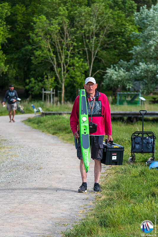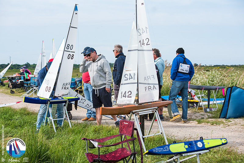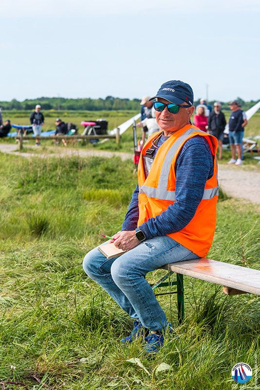 Derek Priestley GBR67 a débuté la voile modèle avec un Vane (en navigation libre) en 1961, à l’âge de 9 ans. Ce n’est qu’en 1973, que la voile radio-commandé a été introduite dans son club. Un an plus tard en 1974, le premier national de Marbleheads a eu lieu à Guilford MYC. Il n’est pas peu fier, à juste titre, d’avoir participé à la première coupe du Monde en M et 10R à Gosport MYC l’année d’après, en 1974. Derek se souvient ensuite d’avoir croisé un adolescent venu de France en 1986 à Fleetwood, et qui n’a pas hésité à revenir en 1990 pour remporter son premier championnat du monde : il s’agit de Christophe Boisnault. Il se sent quant à lui chanceux d’avoir continuer à participer à de nombreuses éditions depuis. Son meilleur résultat dans ce niveau mondial est d’être rentré dans le top 20 au mac de Garde en 2016. Ce ne sera pas le cas cette année à Saint-Hilaire-de-Riez, où Derek bien loin du rythme, a essentiellement navigué en flotte D. A 73 ans, Derek est actuellement le président de la MYA, mais également de Fleetwood MYC et a profité de son championnat du Monde avec sa femme et ses amis avec qui il se retrouvait tous les soirs pour partager le diner, avant de revenir dans une très belle maison de pêcheur… La belle vie ! [Derek Priestley GBR67 started model sailing with a Vane (in free sailing) in 1961, at the age of 9. It wasn’t until 1973 that radio-controlled sailing was introduced to his club. A year later, in 1974, the first Marbleheads National took place at Guilford MYC. He is justifiably proud of having participated in the first World Cup in M and 10R at Gosport MYC the following year, in 1974. Derek then remembers meeting a teenager from France in 1986 at Fleetwood, who did not hesitate to return in 1990 to win his first World Championship: this was Christophe Boisnault. He feels lucky to have continued to participate in many editions since then. His best result at this world level is to have entered the top 20 at the mac de Garde in 2016. This will not be the case this year at Saint-Hilaire-de-Riez, where Derek, far from the pace, has mainly sailed in fleet D. At 73 years old, Derek is currently the president of the MYA, but also of Fleetwood MYC and has enjoyed his World Championship with his wife and his friends with whom he met every evening to share dinner, before returning to a very beautiful fisherman’s house… The good life!]