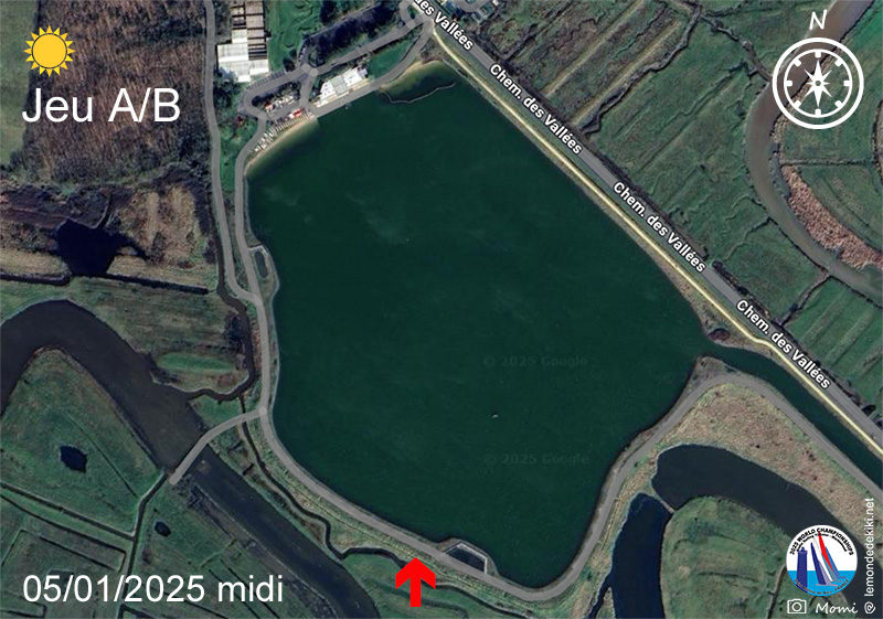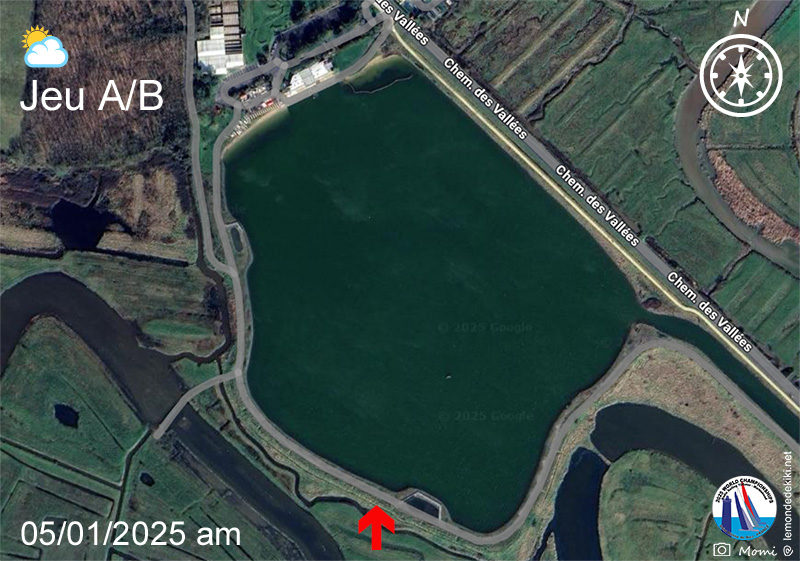 Pour ce qui est de la météo, cette fois le vent est de secteur S et tourne au SW en fin de journée, privilégiant les gréements A et B toute la journée, puis A en fin de journée sous une pluie éparse.