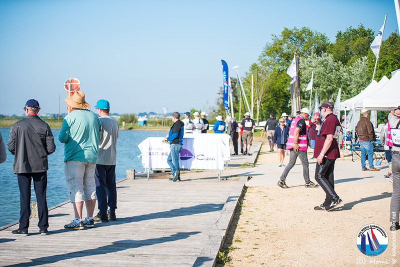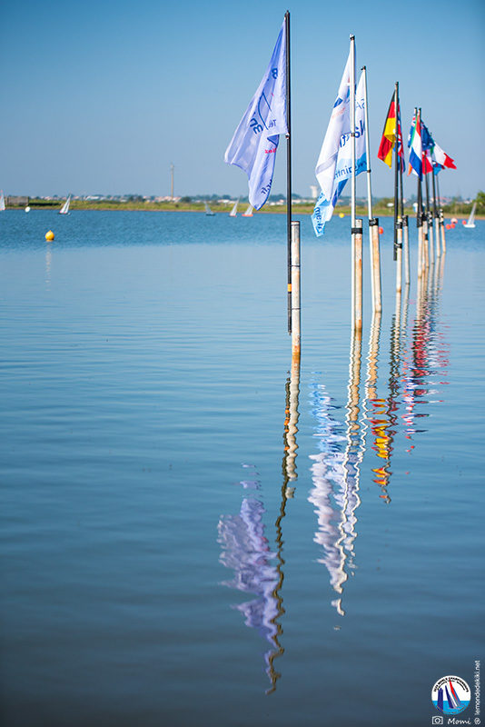 Encore une belle journée que ce lundi. Du soleil, encore, et un vent idéalement orienté NE voire NNE, avec un parcours et une zone de contrôle devant le club, en gréements A. Le plan d’eau est juste parfait. Avec des berges totalement dégagées, il reste navigable dans toutes les directions de vent. [Another beautiful day this Monday. Sunshine, again, and an ideally NE or even NNE wind, with a course and a control zone in front of the club, in A rigs. The water is just perfect. With completely clear banks, it remains navigable in all wind directions.]