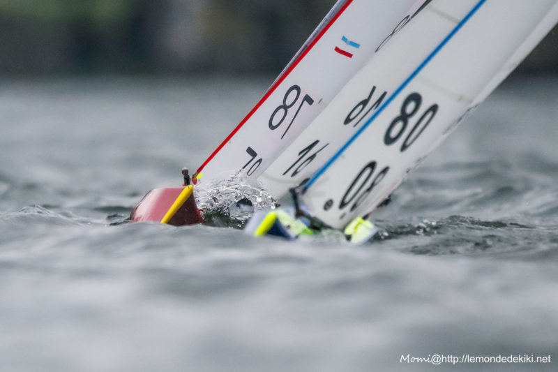 Dimanche ne fait pas mentir les prévisions météo. C’est au sec et au chaud du club que je reste à discuter avec les uns et les autres, pendant que les courses continuent de s’enchainer sous la pluie. L’ordi est branché, la carte est chargée, mais le moment se prête plus à la convivialité qu’à la concentration. On verra les photos à la maison, même si quelques curieux réussissent à prendre la main, du moins la souri de l’ordi de Momi pour découvrir leur rafiot. 😀