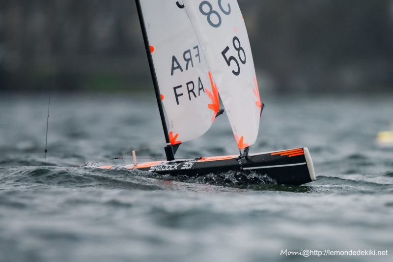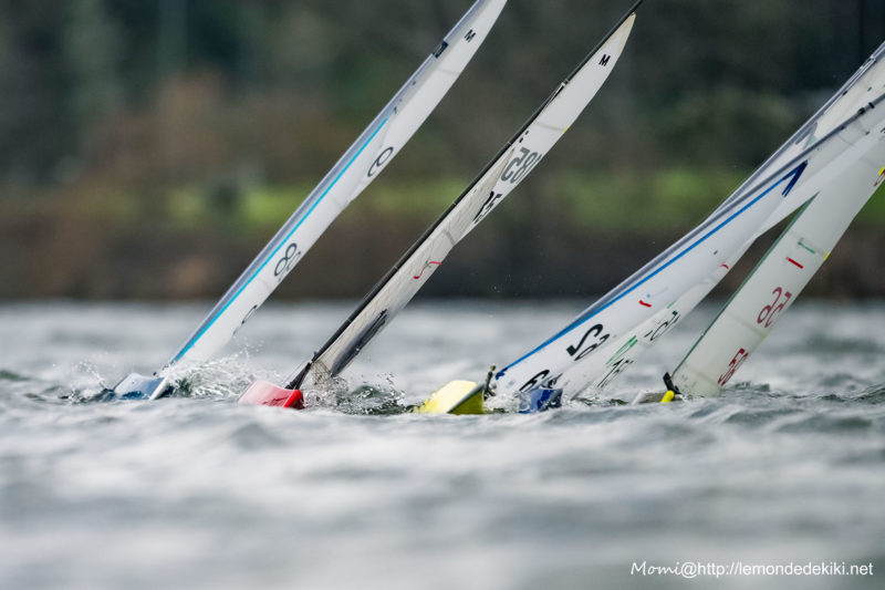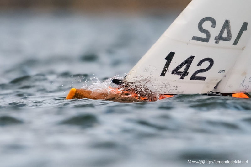 Alors, je plante le décor : le lac déborde, mais vraiment hein, avec une consigne non négociable, des bottes pour tout le monde. Pour une fois, Momi se fondra mieux dans ce décor justement avec ses waders. Et cette eau, bah, elle est bien agitée. Il y a un bon clapot. Le vent? On va dire un N NE assez stable avec des baffes à 24 nœuds. Le ciel? Un joli nuancier de gris… avec du gris, du gris, mais aussi un peu de gris. Quoi qu’il en soit, je me régale d’avance de retrouver ce support que j’aime vraiment beaucoup, le Marblehead. Quant à Momiflette, débutante en photo depuis quelques semaines avec son nouveau matériel, elle vient d’abord pour respirer en dehors de ses 4 murs, s’amuser avec les copains, et non accessoirement, continuer d’apprendre à gérer son nouveau joujou, parce que c’est un chouette défi que de continuer d’apprendre. Dommage pour la lumière, mais un défi ne serait pas un défi, si c’était trop simple. Déjà, l’axe du vent joue en sa faveur, avec un parcours idéal pour elle. 😀 La cuisine moderne s’amuse à déstructurer des plats pour redonner un coup de jeune aux assiettes. La technologie moderne a tendance à faire le même effet sur Momi. Upgrader un boitier, c’est accepter que la structure ne soit plus la même, tout en gardant les saveurs et le plaisir. Le choix du gréement s’oriente vers le C2. Allez, à taaaaaaaaaaaaaaaaaaaaable !