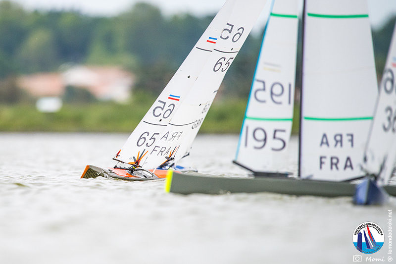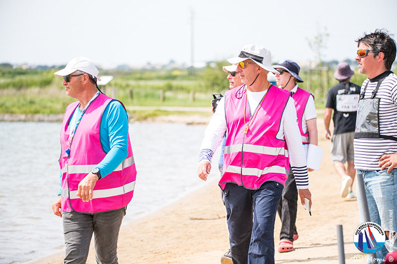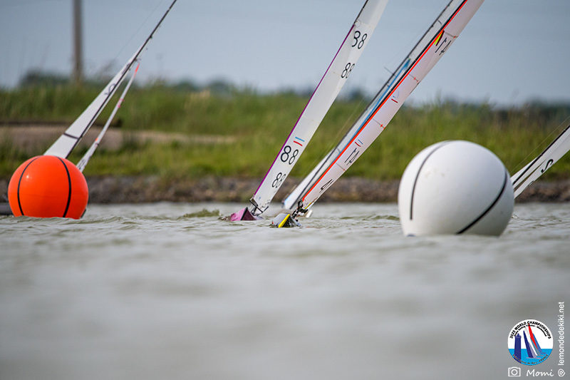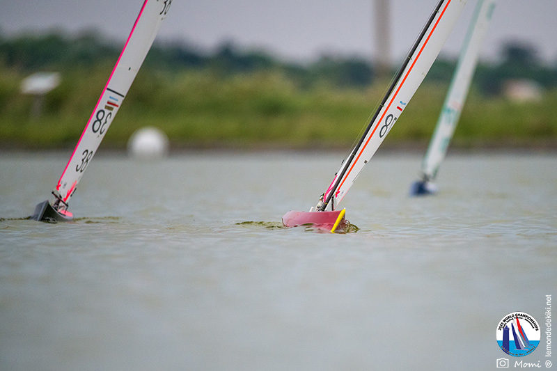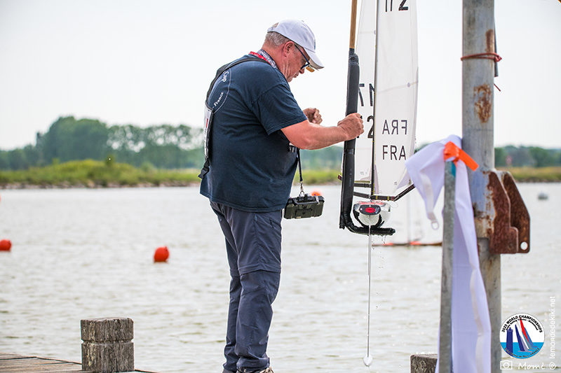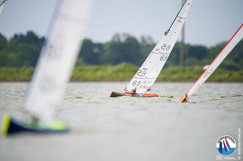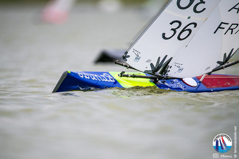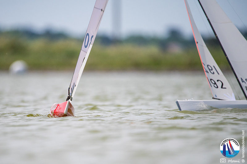A l’issue de cette journée et des 12 courses validées, Chris Harris GBR121 (33pts) s’est bien installé en haut de la boite, au dessus de Christophe Boisnault FRA13 (37pts) et Darin Ballington GBR98 (57pts). [PCC Pierre Gonnet made the wise decision to stop the races at 5:30 p.m., offering a well-deserved rest, as the wind shifted ESE, forcing a change of course and control zone. To celebrate this early return home, Paulo Cappa ITA130 began speaking Breton, now that he had tasted the joys of the Billig (Breton crepe maker), and had become a Breton by adoption: « demat! » which means hello, and is pronounced « démate », it means the boat breaks its mast in french 😀… On his way back from his last race, he stumbled on the edge of the slipway, and returned safely without further trouble. 😀 At the end of this day and the 12 validated races, Chris Harris GBR121 (33 points) had firmly established himself at the top of the leaderboard, above Christophe Boisnault FRA13 (37 points) and Darin Ballington GBR98 (57 points).]