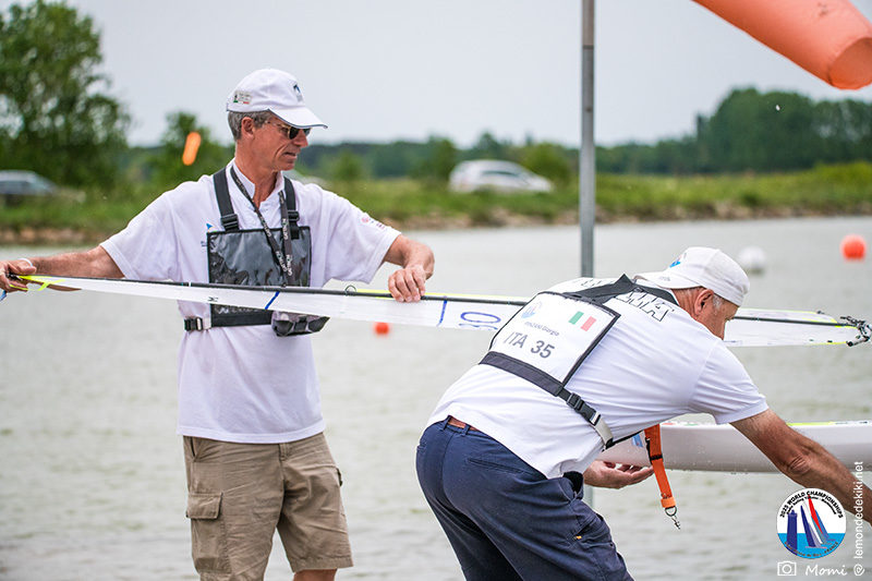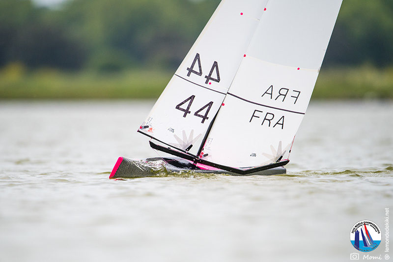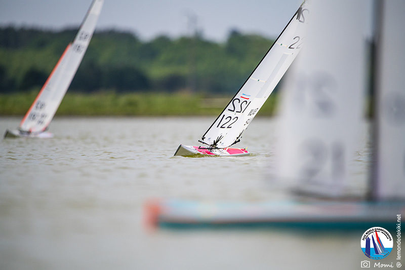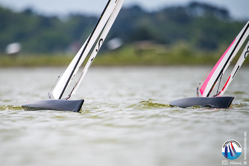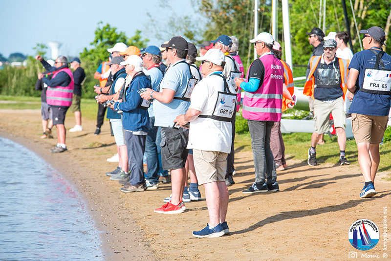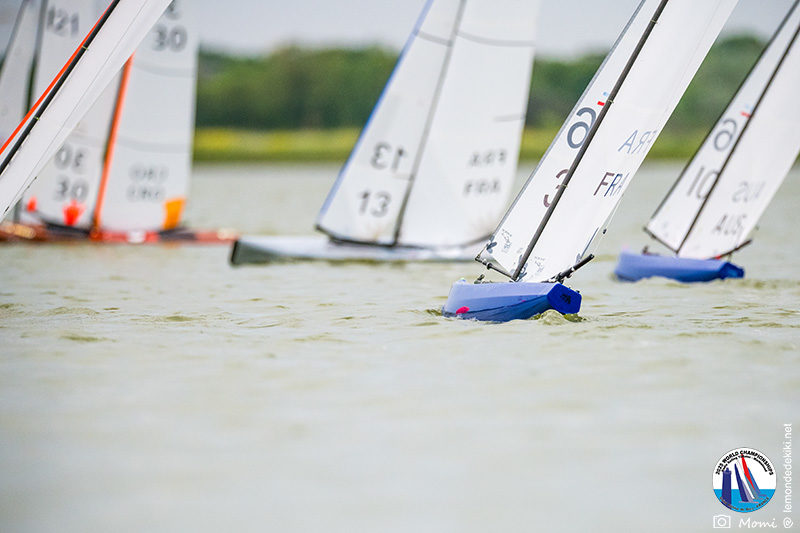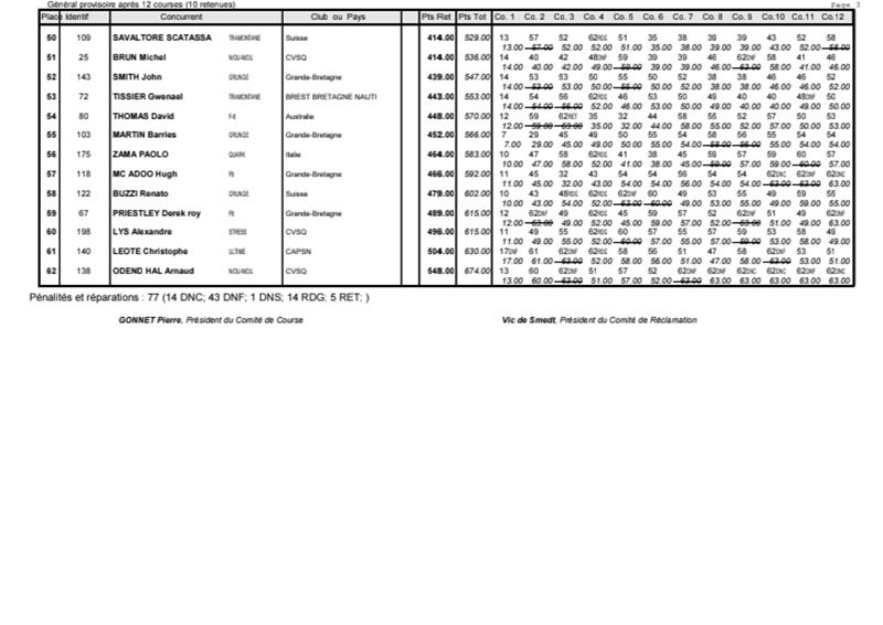 A l’issue de cette journée et des 12 courses validées, Chris Harris GBR121 (33pts) s’est bien installé en haut de la boite, au dessus de Christophe Boisnault FRA13 (37pts) et Darin Ballington GBR98 (57pts). [PCC Pierre Gonnet made the wise decision to stop the races at 5:30 p.m., offering a well-deserved rest, as the wind shifted ESE, forcing a change of course and control zone. To celebrate this early return home, Paulo Cappa ITA130 began speaking Breton, now that he had tasted the joys of the Billig (Breton crepe maker), and had become a Breton by adoption: « demat! » which means hello, and is pronounced « démate », it means the boat breaks its mast in french 😀… On his way back from his last race, he stumbled on the edge of the slipway, and returned safely without further trouble. 😀 At the end of this day and the 12 validated races, Chris Harris GBR121 (33 points) had firmly established himself at the top of the leaderboard, above Christophe Boisnault FRA13 (37 points) and Darin Ballington GBR98 (57 points).]