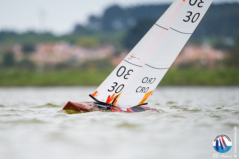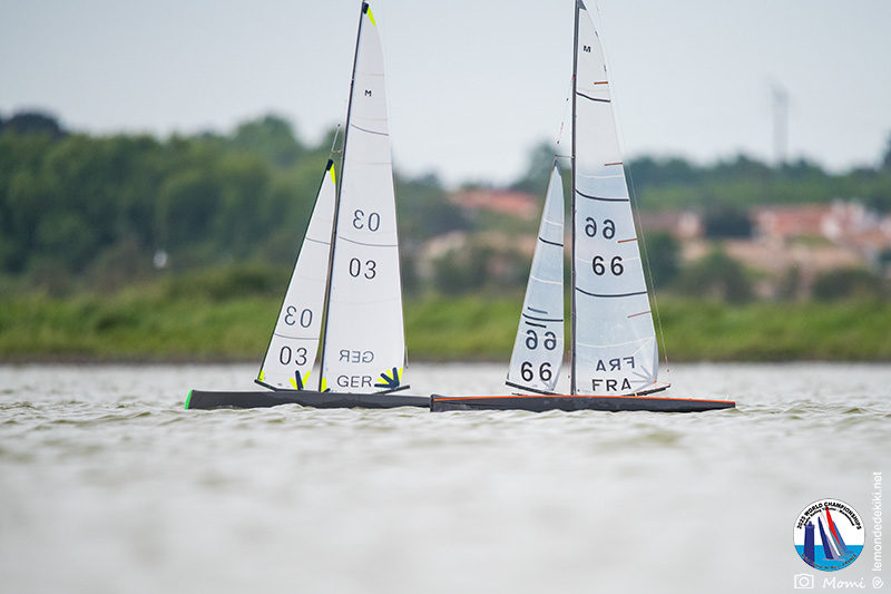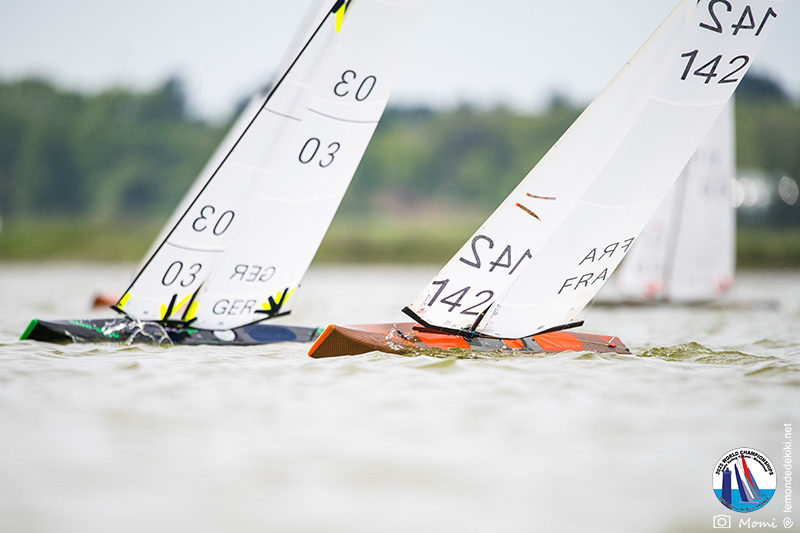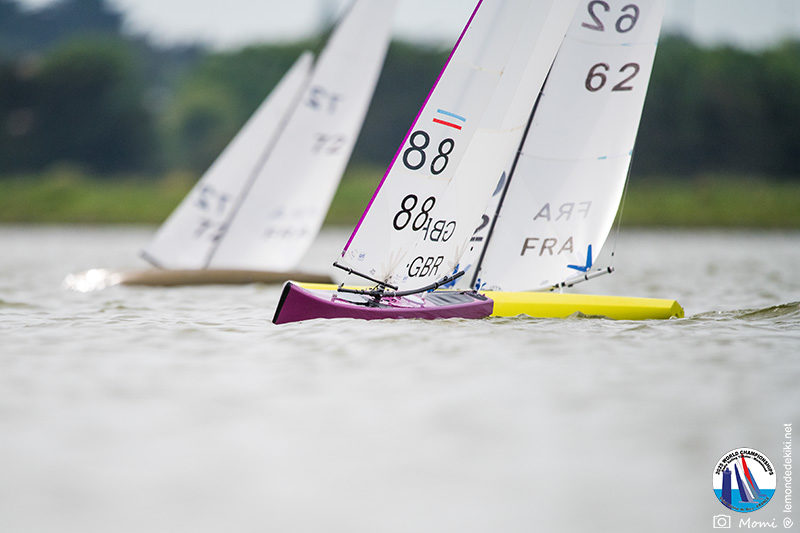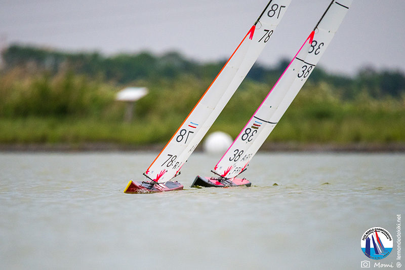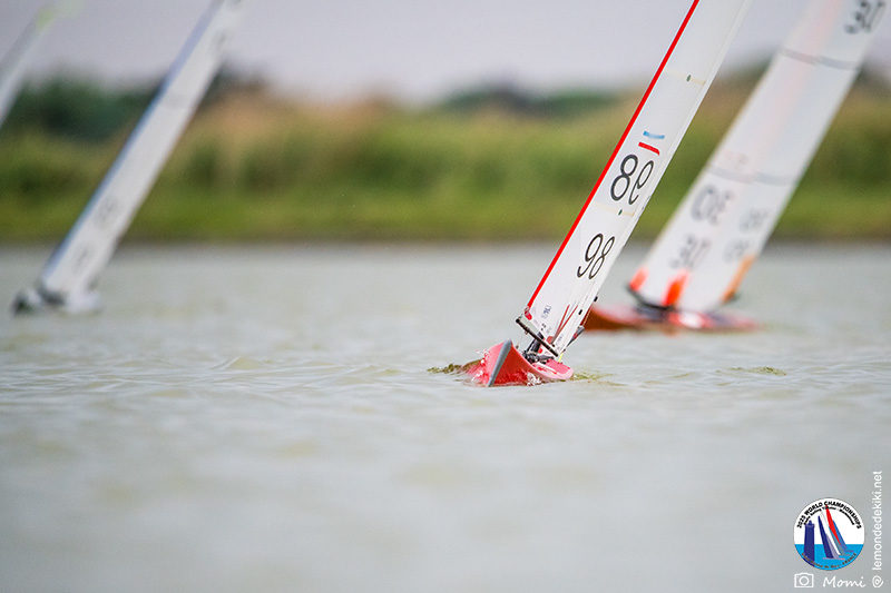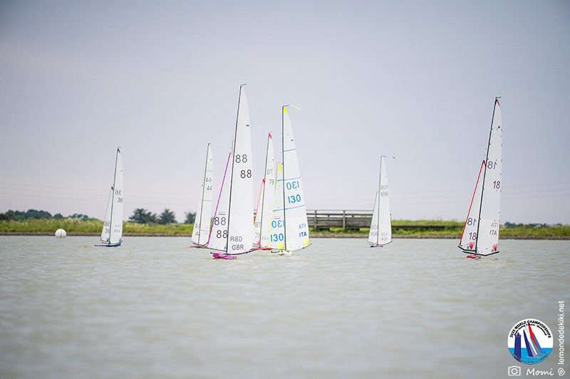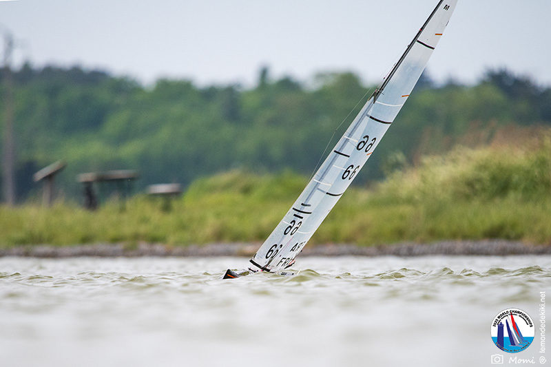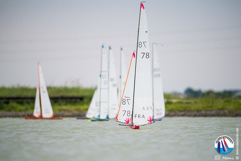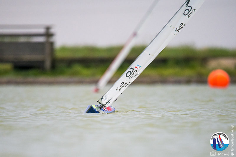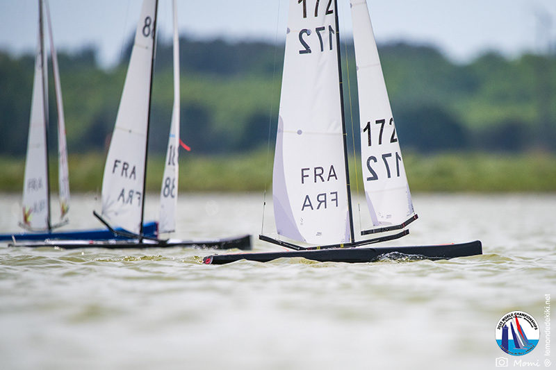 Retournons à nos moutons, parce que pour autant, la compétition continue, et c’est là l’essentiel. Retour devant le club pour la zone de pilotage avec un vent ENE, et des gréements A. Alors que certains ne se peuvent cacher leur fatigue, à se demander s’ils se promènent sur le ponton avec leur radio commande, ou si c’est la radio commande qui les promènent, d’autres ne font que confirmer leur motivation : comme on dit, ils ne sont pas là pour peigner la girafe. [A tough awakening for Princess Momiflette today. I think she forgot something essential this morning: it seems she didn’t choose the « I’m waking up » option when getting out of bed. Since I value life, I’m going to let her sleep until 2:00 PM. In the meantime, I’ll leave her to her sleepwalking; she’ll soon be able to behave herself while chatting with her friends. But yes, but hey, you also have to understand, the problem with morning is that it’s obviously too early, right? Let’s get back to the point, because even so, the competition continues, and that’s the main thing. Back in front of the club for the piloting area with an ENE wind, and A rigs. While some cannot hide their fatigue, wondering if they are walking on the pontoon with their radio control, or if it is the radio control that is walking them, others only confirm their motivation: as they say, they are not there to comb the giraffe.]
