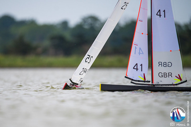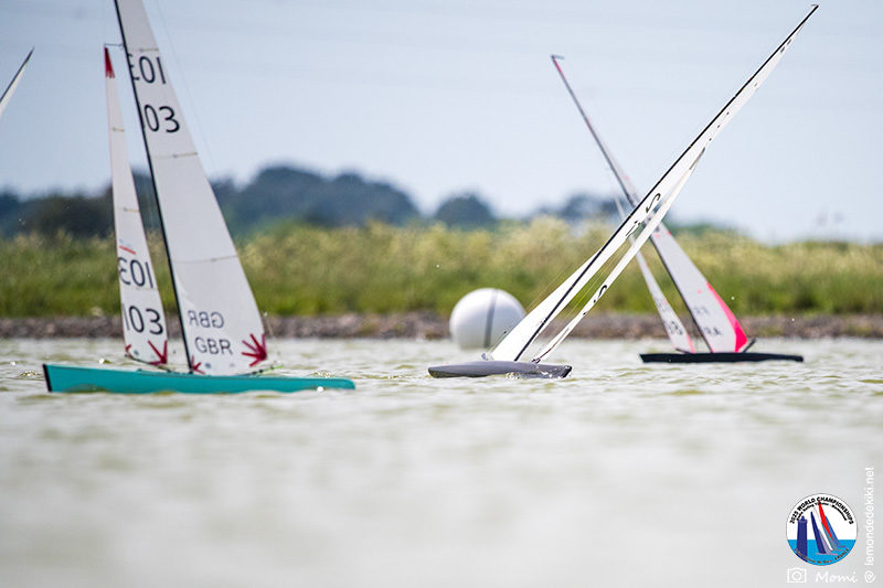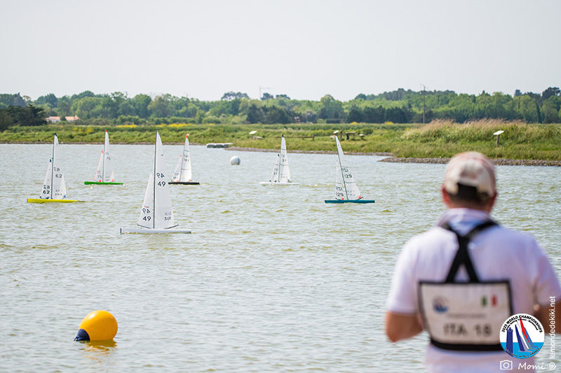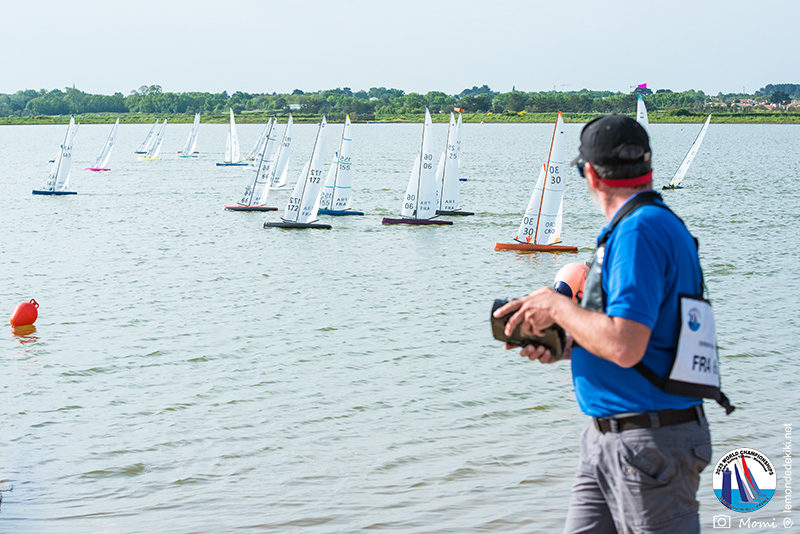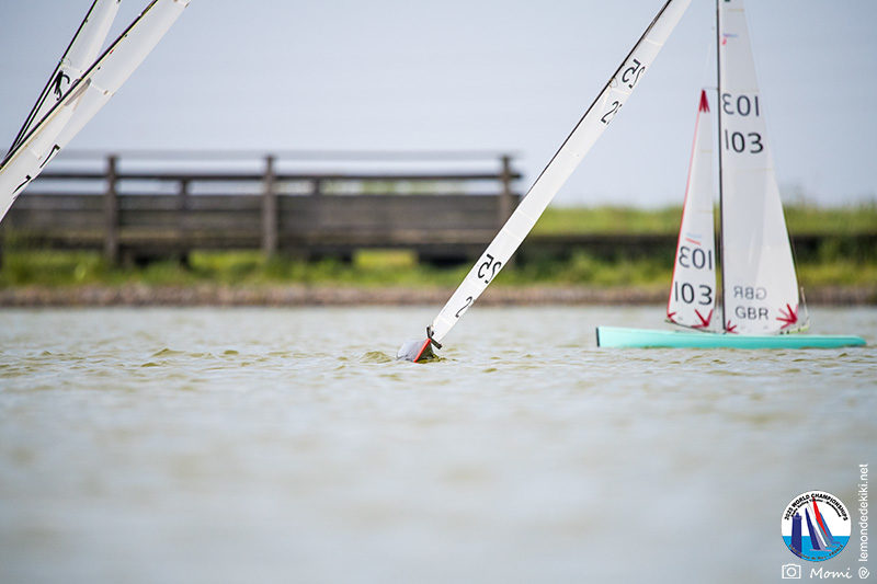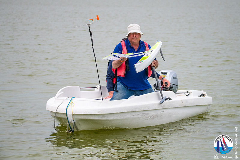 L’actuel président de l’IMCA (Internationale Marblehead Class Associtaion), était en flotte B pour les répartitions. Depuis, il profite des flottes A/B/C et multiplie donc les courses. C’est une bonne façon de profiter au maximum du plan d’eau ! 😀 C’est donc sans surprise qu’il « navigue » entre la 34ième et 22ième place au général provisoire. A noter tout de même, deux belles places de 10 sur la C4 et C5. Il ne se cache pas de ne pas avoir pris assez de temps pour s’entrainer avant de venir à Saint-Hilaire-de-Riez, mais reconnait qu’il aurait pu faire mieux avec son chouette Niou Niou. Nigel, du haut de ses 53 ans, a toujours navigué ou presque. Dès son plus jeune âge, ses parents avaient leur voilier et l’embarquaient dans leurs navigations du WE et des vacances d’été. Vers ses 9 ans, pour l’occuper le soir quand ils étaient au port, il a eu son premier voilier RC. Ce n’est que 25 ans plus tard, qu’il s’achète un Marblehead, en 2006. C’est en 2012 qu’il participe à ses premiers championnats du Monde en France, à Ploermel. Il a participé ensuite à 3 autres championnats du Monde et participé à l’organisation de ceux de 2018 en Allemagne. Très motivé par sa fonction à l’IMCA, mais également en tant que concurrent, il souhaite rapidement trouver un hôte pour les prochains championnats du Monde, et poursuivre ainsi cette série qui a commencé en 2012… [And then some are just happy to be there at this international racing event. This is the case of Nigel Winkley GER03. The current president of the IMCA (International Marblehead Class Association) was in fleet B for the allocations. Since then, he’s been taking advantage of the A/B/C fleets and therefore racing more. It’s a good way to make the most of the race track! 😀 It’s therefore no surprise that he’s « sailing » between 34th and 22nd place in the provisional standings. It’s worth noting, however, two nice 10th-place finishes on the C4 and C5. He doesn’t hide the fact that he didn’t take enough time to train before coming to Saint-Hilaire-de-Riez, but admits he could have done better with his nifty Niou Niou. Nigel, at 53 years old, has almost always sailed. From a very young age, his parents had their sailboat and would take him on their weekend and summer vacation trips. Around the age of 9, to keep him busy in the evenings when they were at the port, he got his first RC sailboat. It wasn’t until 25 years later that he bought a Marblehead, in 2006. In 2012, he participated in his first World Championships in France, in Ploermel. He then participated in 3 other World Championships and helped organize the 2018 World Championships in Germany. Highly motivated by his role at the IMCA, but also as a competitor, he hopes to quickly find a host for the next World Championships, and thus continue this series that began in 2012…]