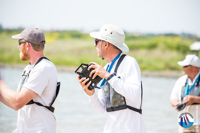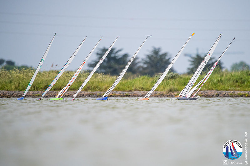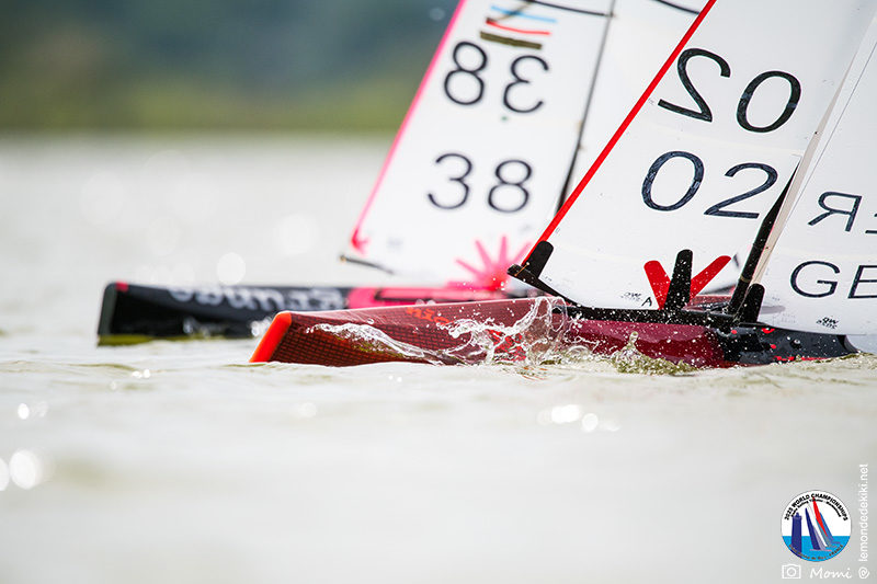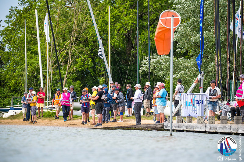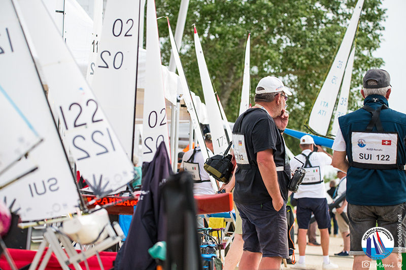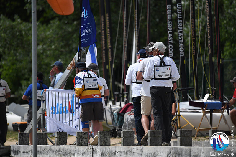 La journée commence doucement avec des échanges constructifs, histoire de refaire le monde dès le matin. Tous les voyants sont au vert… le soleil est là, le vent aussi, dans l’axe devant le club. Les sourires sur tous les visages arrivent à masquer au mieux la fatigue accumulée depuis le début de la compétition. Et la flotte 8D part à l’eau.